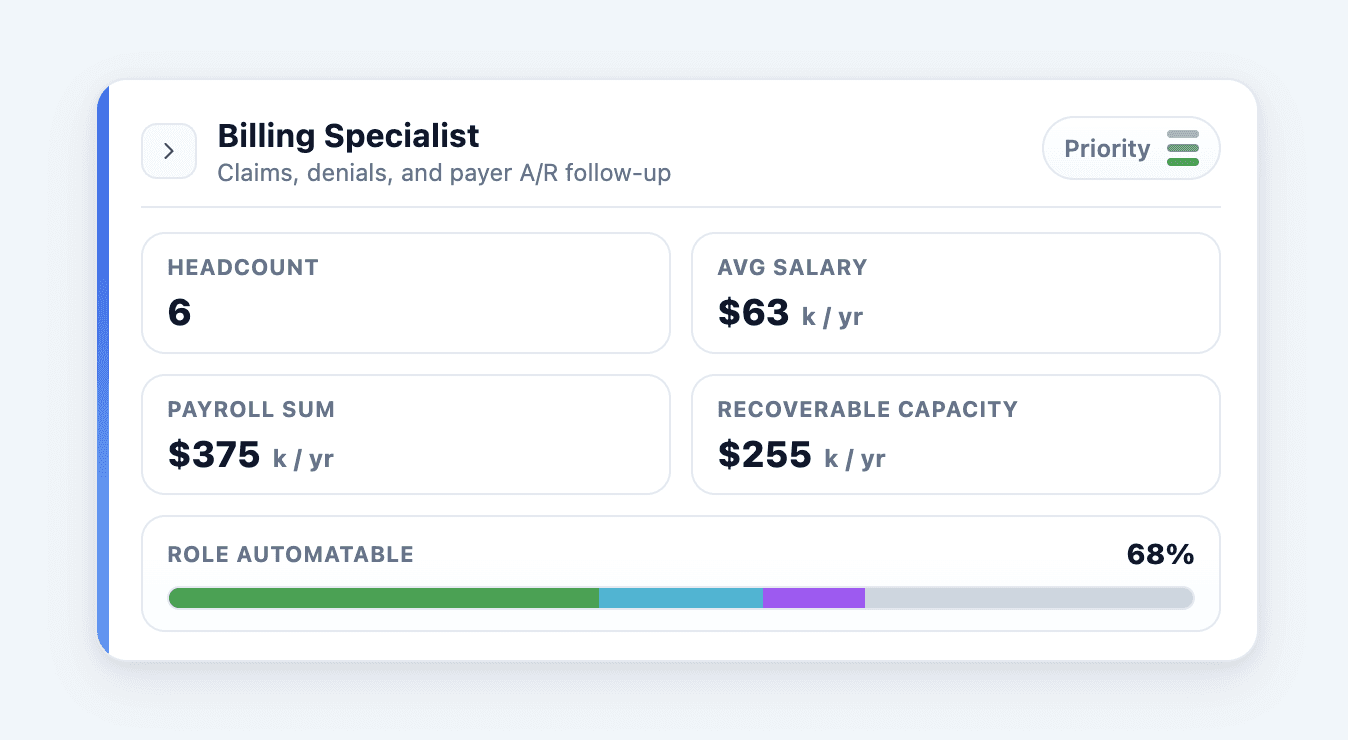 Clear path to capture recovered capacity — not just "save time", but reinvest or reduce